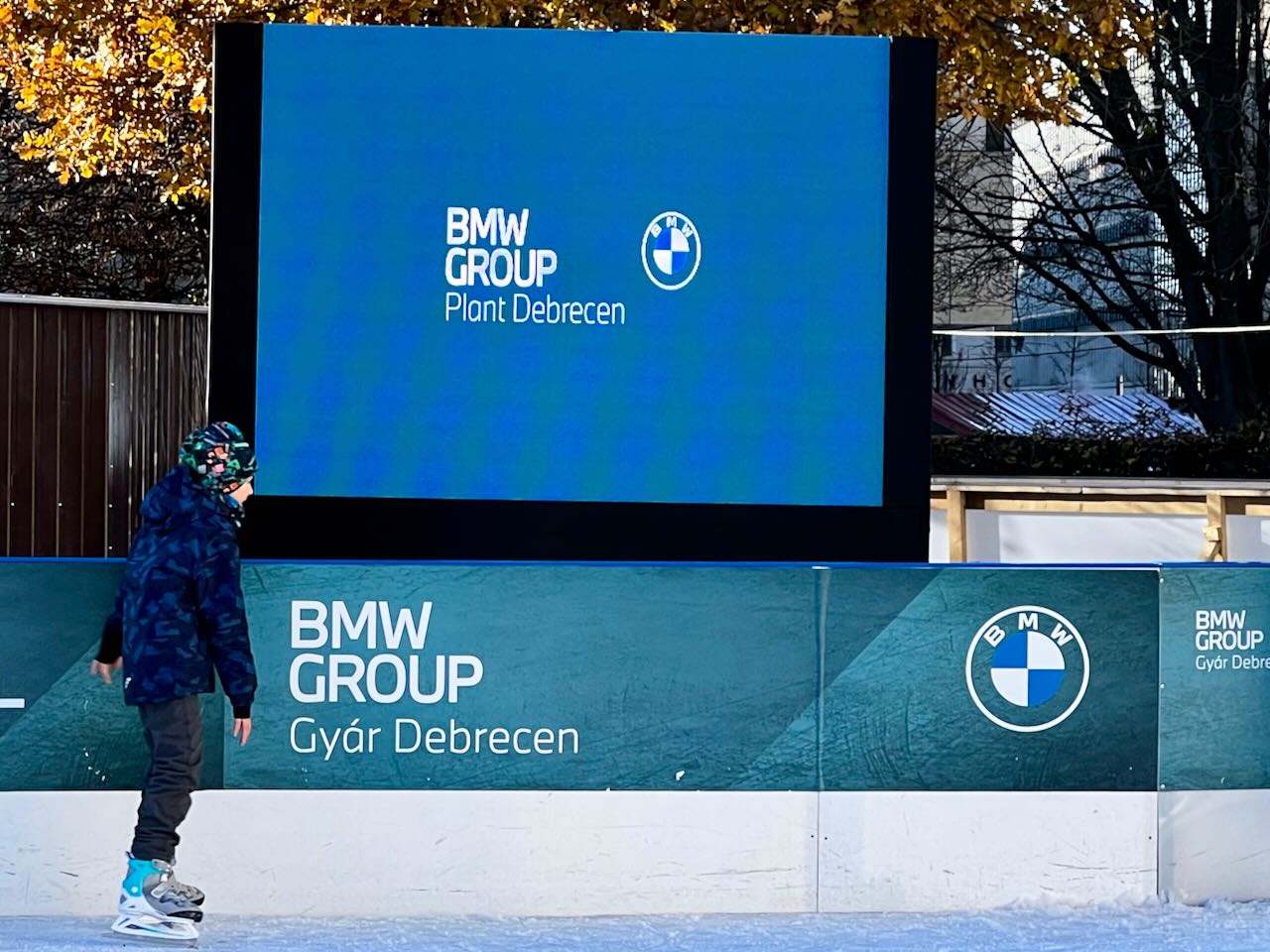 A kijelzÅ‘ a debreceni Nagytemplom elÅ‘tt üzemelt, a BMW Gyár Debrecen által finanszÃrozott műjégpályán.