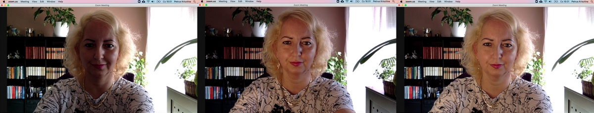 Őszintén szólva, amikor az elsőt visszanéztem. Nő vagyok… a fény csodákra képes. Mivel sokan csak hallgatják ezeket a riportokat, a hangminőség is nagyon fontos, kerülni kell a hirtelen, hangosabb reakciókat, kicsit érdemes lassabban beszélni. Mivel nálam itthoni és csendes a környezet, és a számítógépemnek jó beépített mikrofonja van, így azt csak egyszer kellett beállítani. Amire nagyon oda kell figyelni, hogyha belevágunk a másik szavába, akkor itt a hangzavar nem tud kellemes lenni. Valamint ha otthon a család, a kutyák, és nekünk be van dugva a fülünk, akkor nem feltétlen halljuk, ha épp csenget a postás. A fényekkel sokáig kísérleteztem, többfajta eszközt próbáltam. Ráadásul az íróasztalom mellett végig ablak van, így sok az oldalfény is. Végül az a módszer vált be, hogy asztali sminkvilágítás, mély sárga fényű, és ha nagy a kinti fény a rolót kicsit lehúzom. Nálam nincs egyszínű háttérfal, azokat nagyon irigylem, akik tudnak rá virtuális hátteret csinálni maguknak a riport beszélgetésekhez, mint plusz reklámmegjelenés sem hátrány pl. egy kapcsolatépítésen. Ugyanennyire fontos a már említett jó hang, akár fülhallgató, akár ha a környezet csendes, a beépített gépi mikrofonnal, és ha szeretnénk pár évet fiatalodni a képernyőn, akkor természetesen a megfelelő világítás.